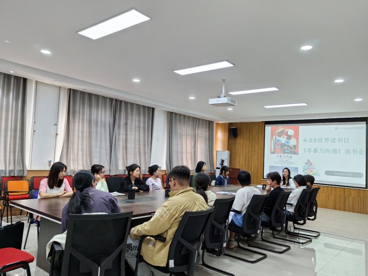 在学院507会议室举办了“4·23世界读书日”《非暴力沟通》读书会。本次读书会由心理辅导员任子瑜老师主讲,吸引了众多热爱阅读、渴望提升沟通能力的同学们参与。