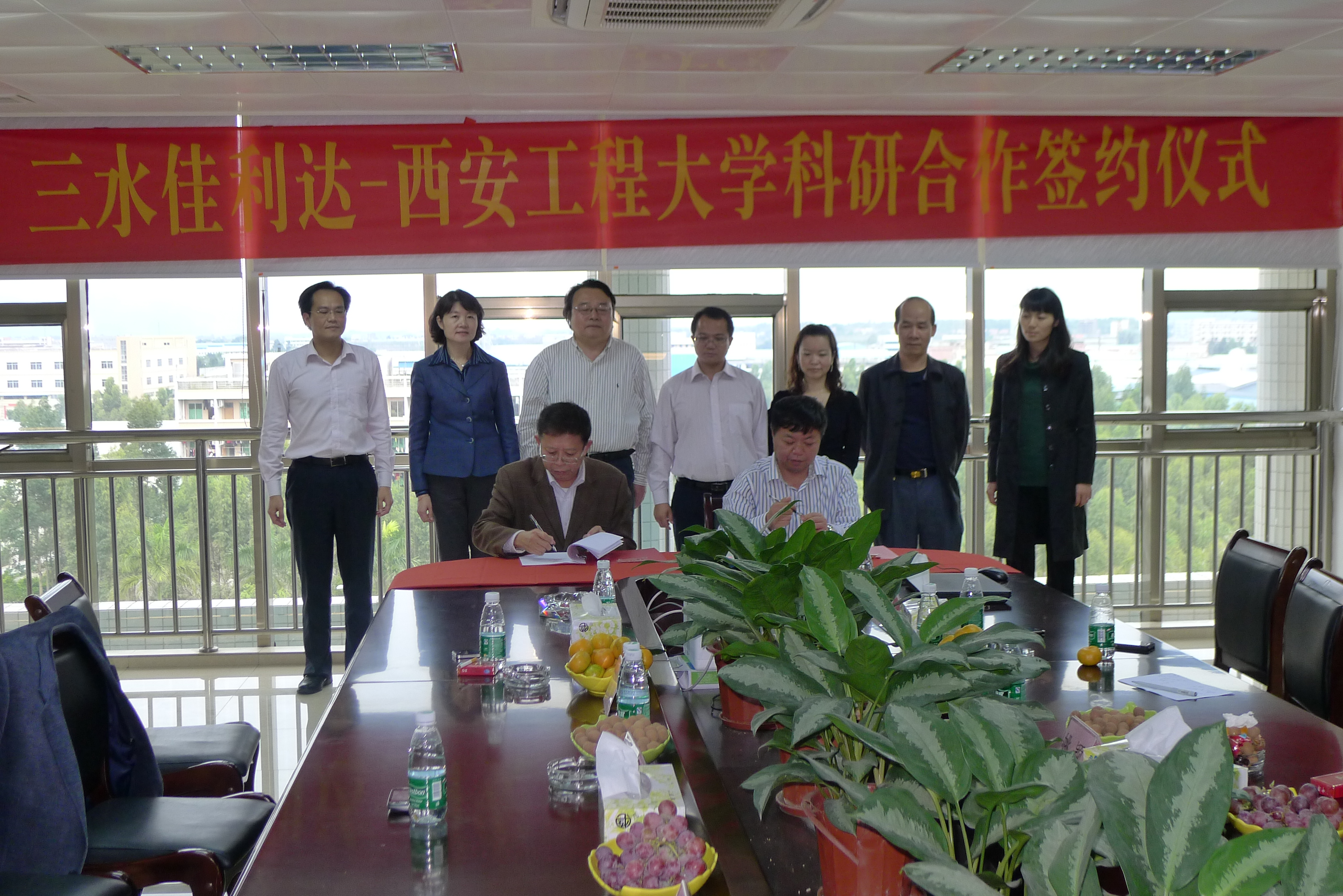 继今年4月,学校与三水佳利达纺织染有限公司签署产学研合作协议,并建立“佛山三水佳利达--西安工程大学工程技术研发中心” 、“西安工程大学研究生创新教育实习基地”,为进一步推进双方产学研合作关系,校长高勇再次率队赴佛山三水佳利达纺织染有限公司与公司负责人接洽,并签定了《污水处理厂及热电厂新技术开发建设》科研项目。