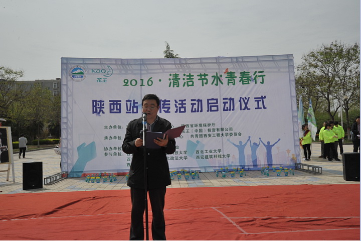 4月9日,由环境保护部宣传教育中心、陕西省环境保护厅、共青团陕西省委员会、花王(中国)投资有限公司主办,陕西省环境保护宣传教育中心、我校团委与陕西省环保志愿者联合会共同承办,我校“绿风”环保协会协办的2016 “清洁节水青春行”陕西站宣传活动启动仪式在我校举行。
