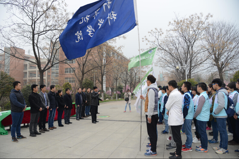与会领导与志愿者们共同发出倡议:爱护环境、爱护校园从我做起,我要为校园生态文明尽份心做件事。随后李博飞与同学们对校园植物进行了挂牌,计算机科学学院辅导员朱成功对挂牌的植物进行了讲解。