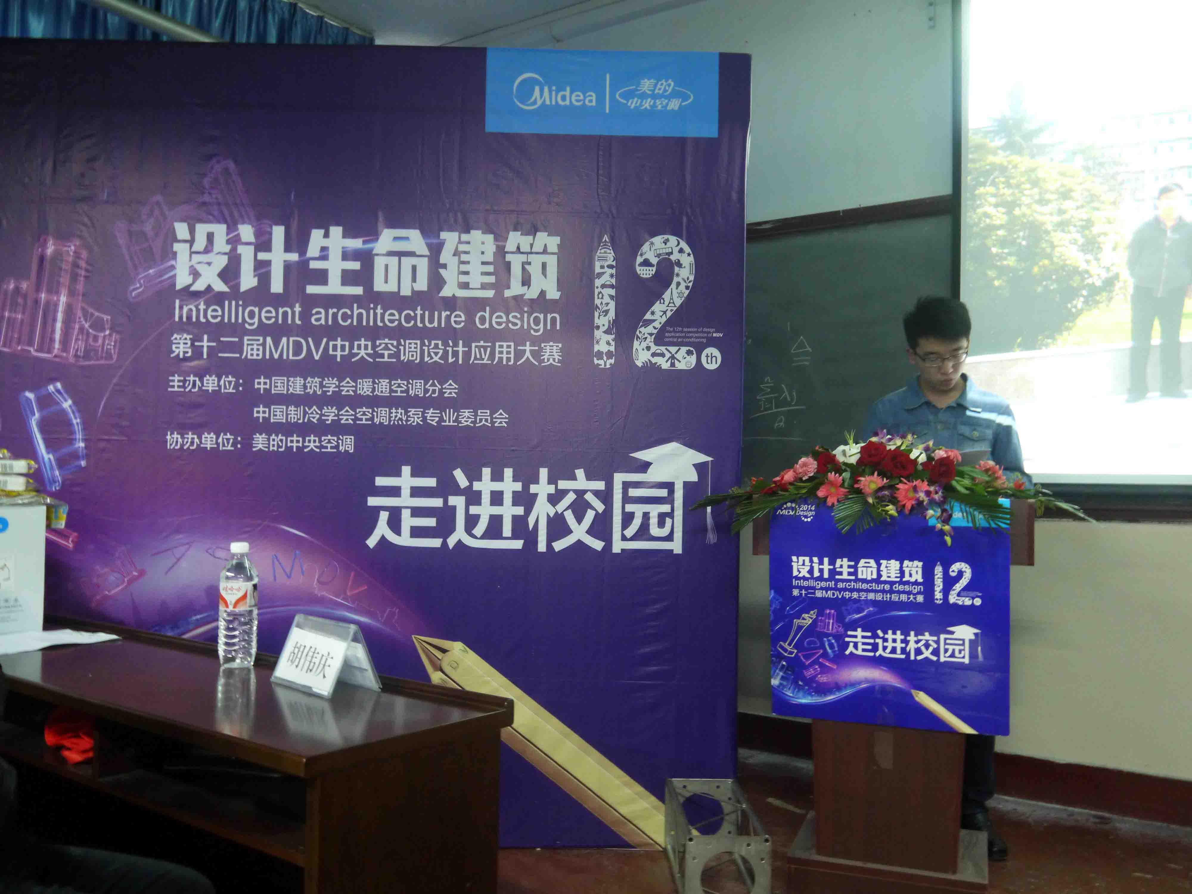 在欣赏了一段精彩的大赛宣传视频后,李建学书记发表了热情洋溢的贺词,随后,来自美的中央空调西安分公司的代表、本次大赛的梦想讲师石斌经理对此次中央空调设计应用大赛进行了详细的介绍,在第十一届MDV中央空调设计应用大赛中获奖学生徐子龙也与大家分享了他们在设计过程中的经验和感受。