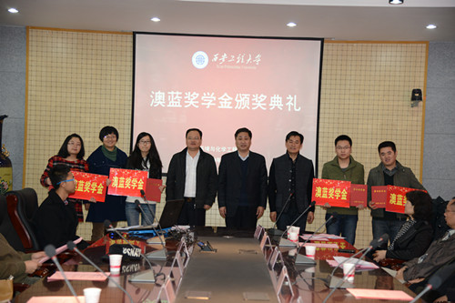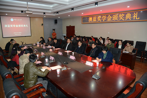 组织举办的“澳蓝”奖学金颁奖典礼在金花校区第三会议室举行。出席颁奖典礼的有澳蓝(福建)实业有限公司董事长黄华铃先生、我校副校长黄翔、研究生部主任万明、学生处副处长张慧、925足球网