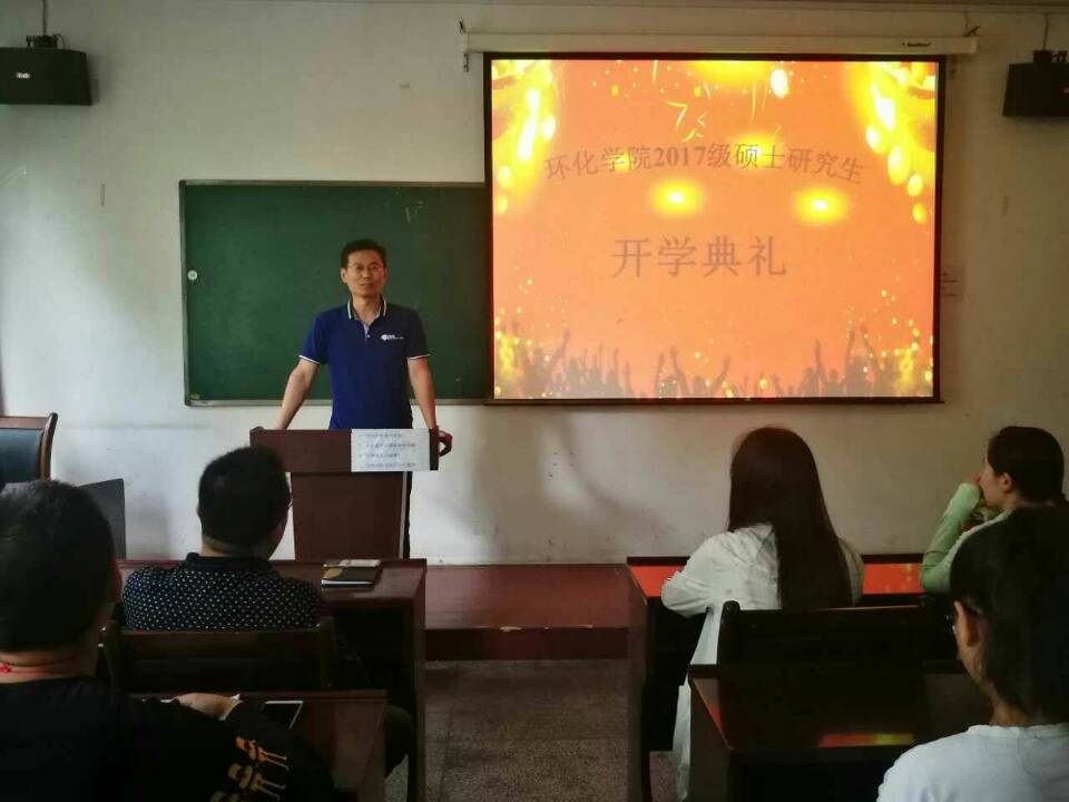 首先,狄育慧院长代表学院对刚刚入学的2017级93名研究生同学表示热烈欢迎和诚挚祝贺。然后介绍了学院基本情况,回顾各学科的发展历史及概况,并结合自身三十余年从教经历对大家提出了殷切希望:希望同学们珍惜韶华,充分利用三年宝贵的学习时光,用智慧才干书写出属于自己的一片天空。