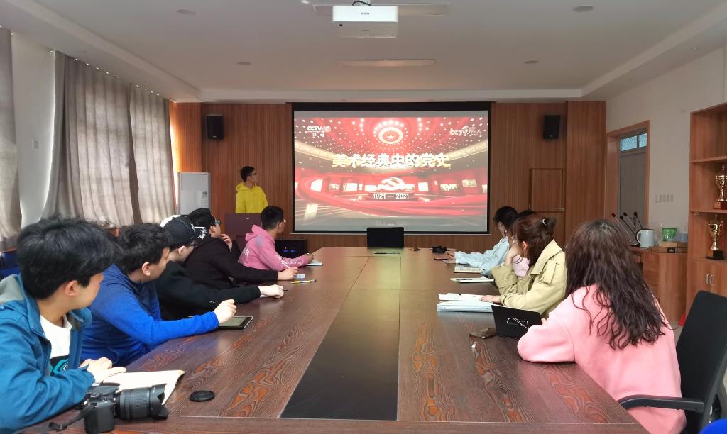 3月27日,辅导员张易泽以视频观赏《美术经典中的党史》为切入点讲授专题党课。以画为体,以史为魂,将党史内容和美术经典巧妙结合,通过再现中国共产党100年来波澜壮阔的光辉历程,鼓励同学们将“红船精神”、长征精神、延安精神等革命精神融入到学习生活当中,在实现人生价值中践行党的初心使命。(撰稿:赖斌 审稿:李建学)