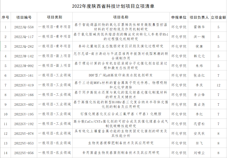 日前,陕西省科技厅公布了2022年度陕西省科技计划项目立项结果,925足球网 共获批14项,占全校获批总数的16.7%,其中:青年项目3项;面上项目2项;工业领域6项;农业领域3项。立项金额:96万元。