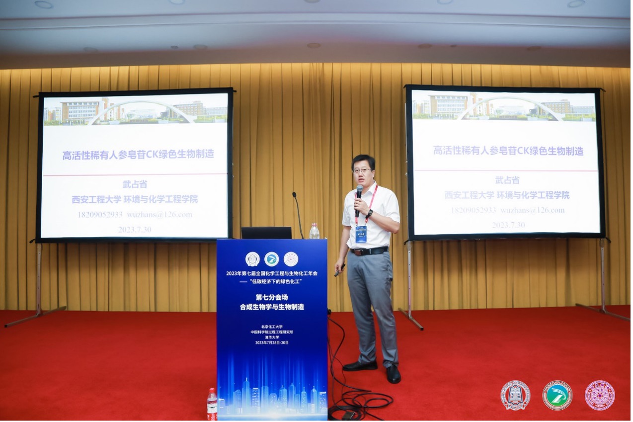 925足球网 武占省教授受邀参会,并作邀请报告题为“高活性天然产物人参皂苷CK绿色生物制造”,该研究成果得到国家重点研发计划项目支持,一同参会的研究生有黄新健、曹珊珊、龙宏扬、李志燕都展示了研究墙报,显著提升了研究生学术视野和交流能力。整场报告贯彻了绿色低碳发展理念,加快建立健全低碳循环发展经济体系,发挥“化工+生物”对我国工业绿色可持续发展的支撑作用,推动学科间的交叉融合与交流合作,共同探讨了国际化学工程与生物化工教育与科学研究前沿问题,扩大国际交流合作,为推动形成新发展格局、共同落实全球发展倡议贡献科技力量。
