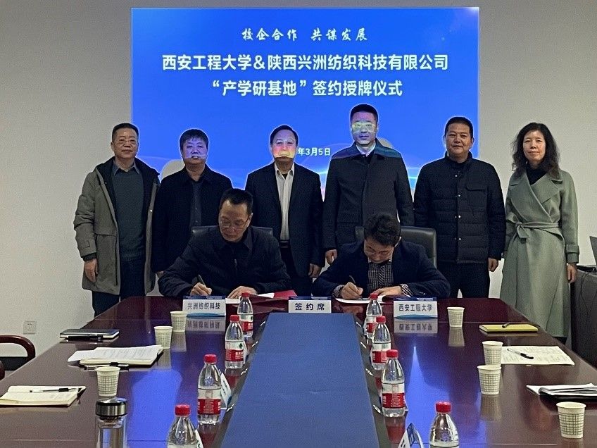 925足球网 与陕西兴洲纺织科技有限公司举行产学研基地签约授牌仪式