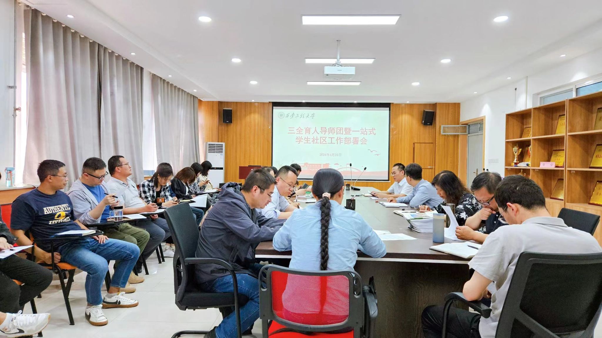 2024年度“一站式”学生社区建设方案。她表示,学院将坚持以学生为本的原则,紧密围绕学生的实际需求,以思想引领为先导,同时注重五育并举,着力打造具有环化特色的品牌活动,以丰富学生的课余生活,提升学生的综合素养。随后,各位与会老师就建设方案进行了讨论。最后,党委书记胡西民对学院2024年度“一站式”学生社区建设提出三点要求, 一是要将“一站式”学生社区建设与三全育人工作紧密结合,落实立德树人根本任务,打通育人“最后一公里”;二是要将“一站式”学生社区建设与党建工作紧密结合,不断完善学生社区组织育人体系,提升学生社区思想政治工作实效;三是要将“一站式”学生社区建设与学校学院中心工作紧密结合,推动多方力量下沉,凝聚育人合力,促进学院内涵式发展。