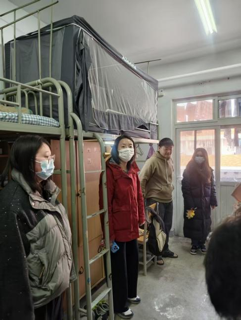 开展本学期第四次研究生宿舍安全卫生集中检查,研究生辅导员朱瑾带队,研会骨干组成联合检查组进行全面排查。