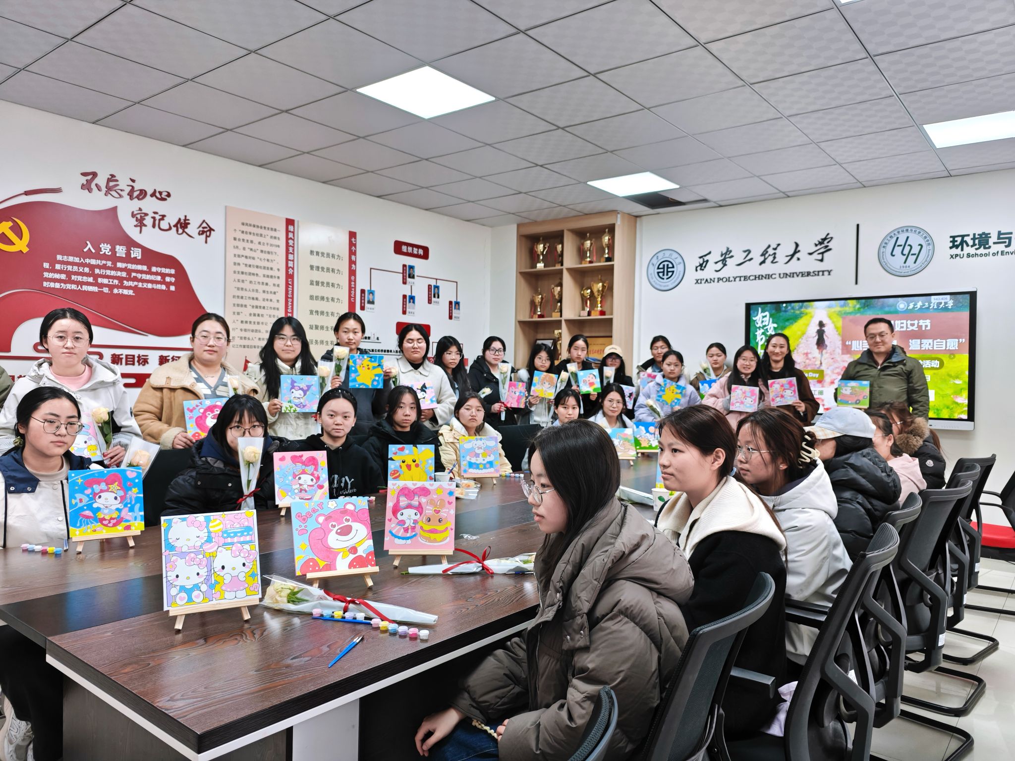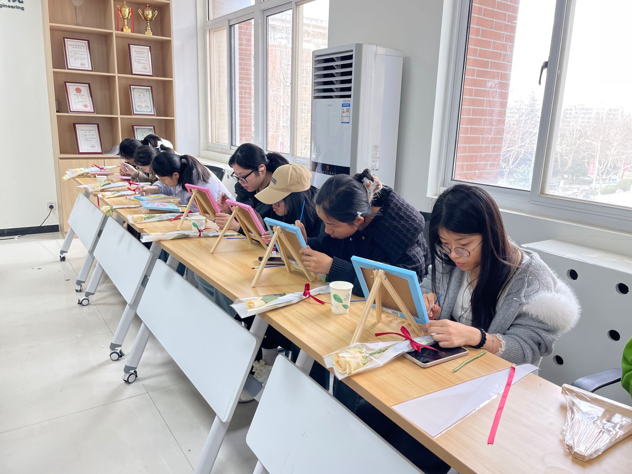 此次活动将心理育人与美育实践相结合,为女同学们搭建了一个放松身心、展示创造力的平台。通过插花与数字油画创作,大家在专注与沉静中有效缓解了压力,体验到艺术带来的自我疗愈力量,进一步促进了女生心理健康水平的提升。这种润物无声的育人方式,不仅让同学们在节日氛围中感受到关怀与温暖,更以积极健康的个体体验汇聚成向上向善的集体能量,营造出充满温度与活力的校园文化氛围。