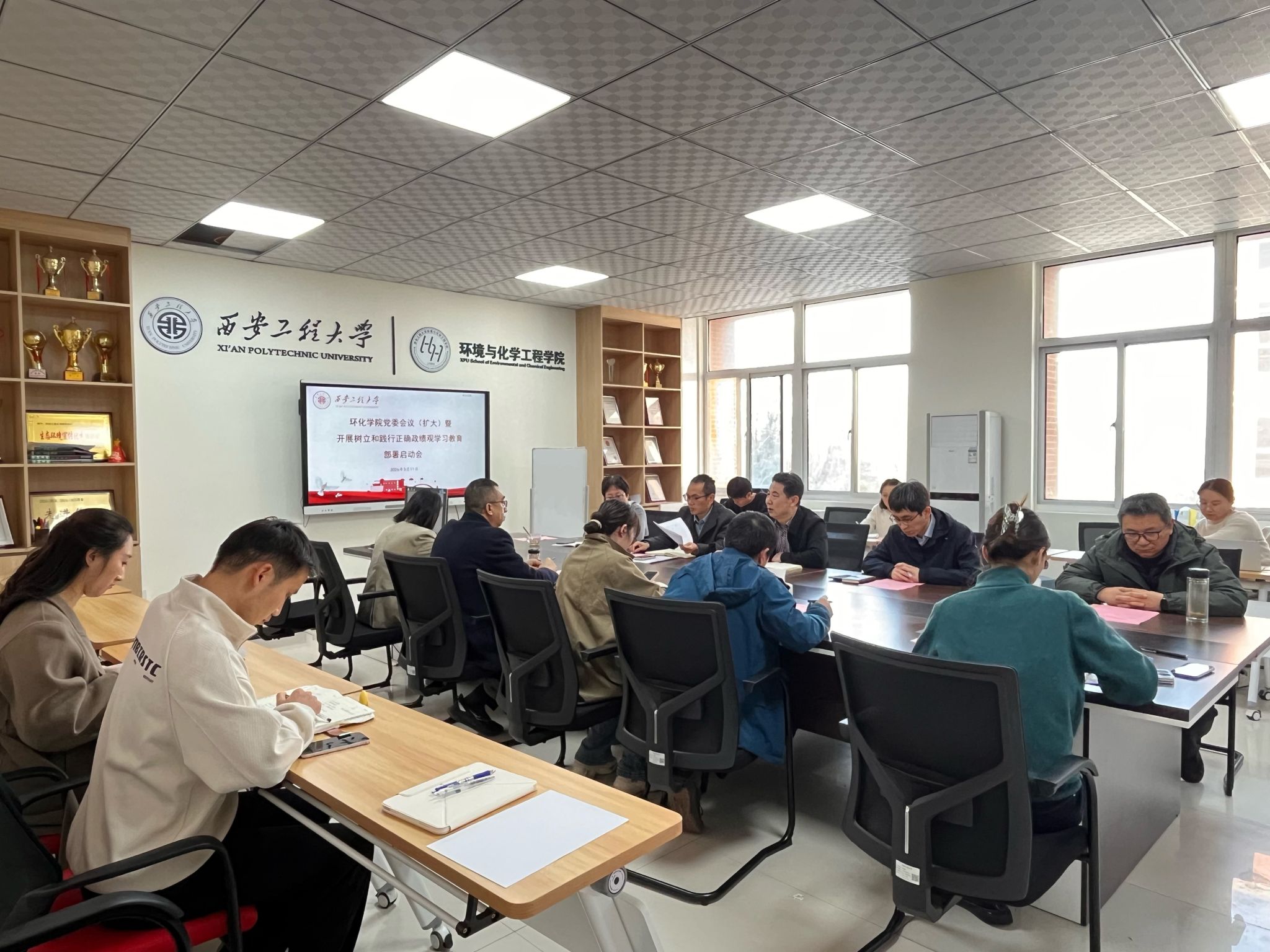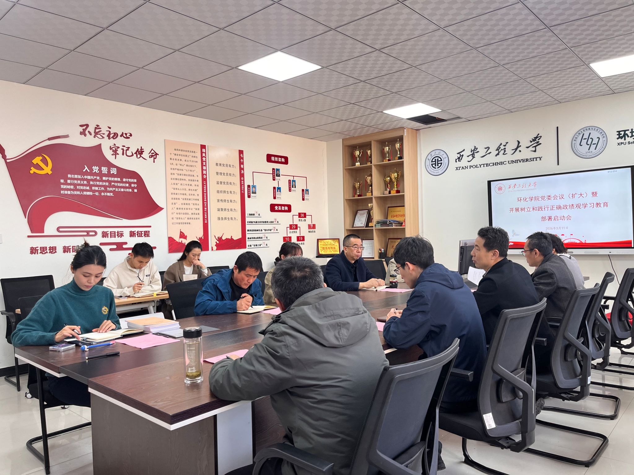 在临潼校区8-236会议室召开党委(扩大)会议,部署启动学院树立和践行正确政绩观学习教育。学院党政领导班子成员、党委委员、各党支部书记及全体辅导员参加会议。会议由学院党委书记胡西民主持。