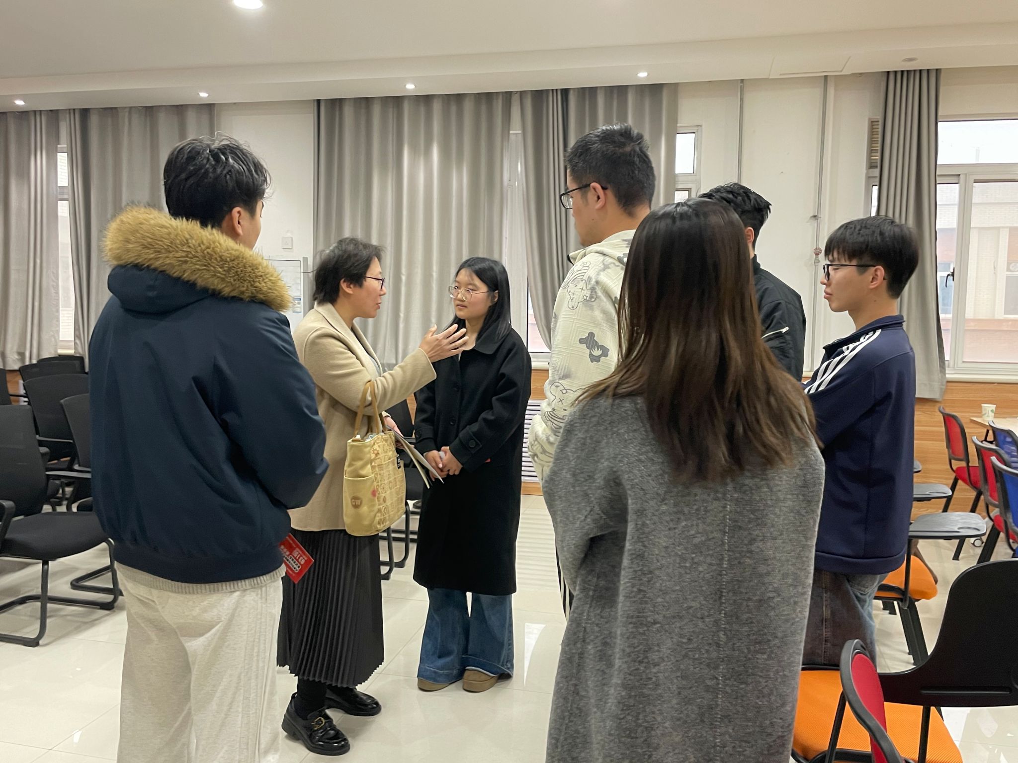会上,学府考研李老师首先围绕复试面试环节进行了系统讲解。她从面试礼仪入手,强调了仪容仪表与行为举止的重要性,并深入剖析了复试评分标准与考察要点。针对考生普遍关注的英文自我介绍,李老师结合实例分析,提供了实用的准备策略和表达技巧。