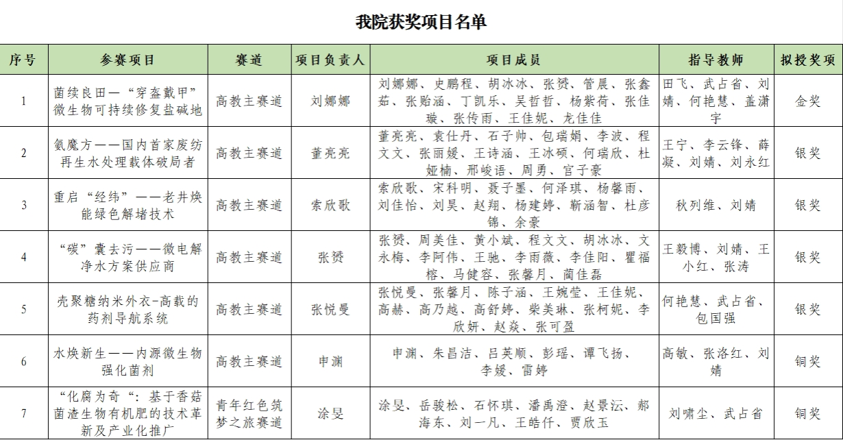 近年来,学院高度重视学生创新创业工作,把学生创新创业教育作为服务学院人才培养和学科建设发展的重要抓手,积极组织和指导学生参加各类创新创业竞赛,引导学生以大赛为平台,用课堂和实验室学到的知识解决实际问题,在创新实践中增本领、长才干。未来,学院将不断完善创新创业教育体系,进一步提升学生的创新精神和实践能力,争取在更多的高水平赛事中取得优异成绩。
