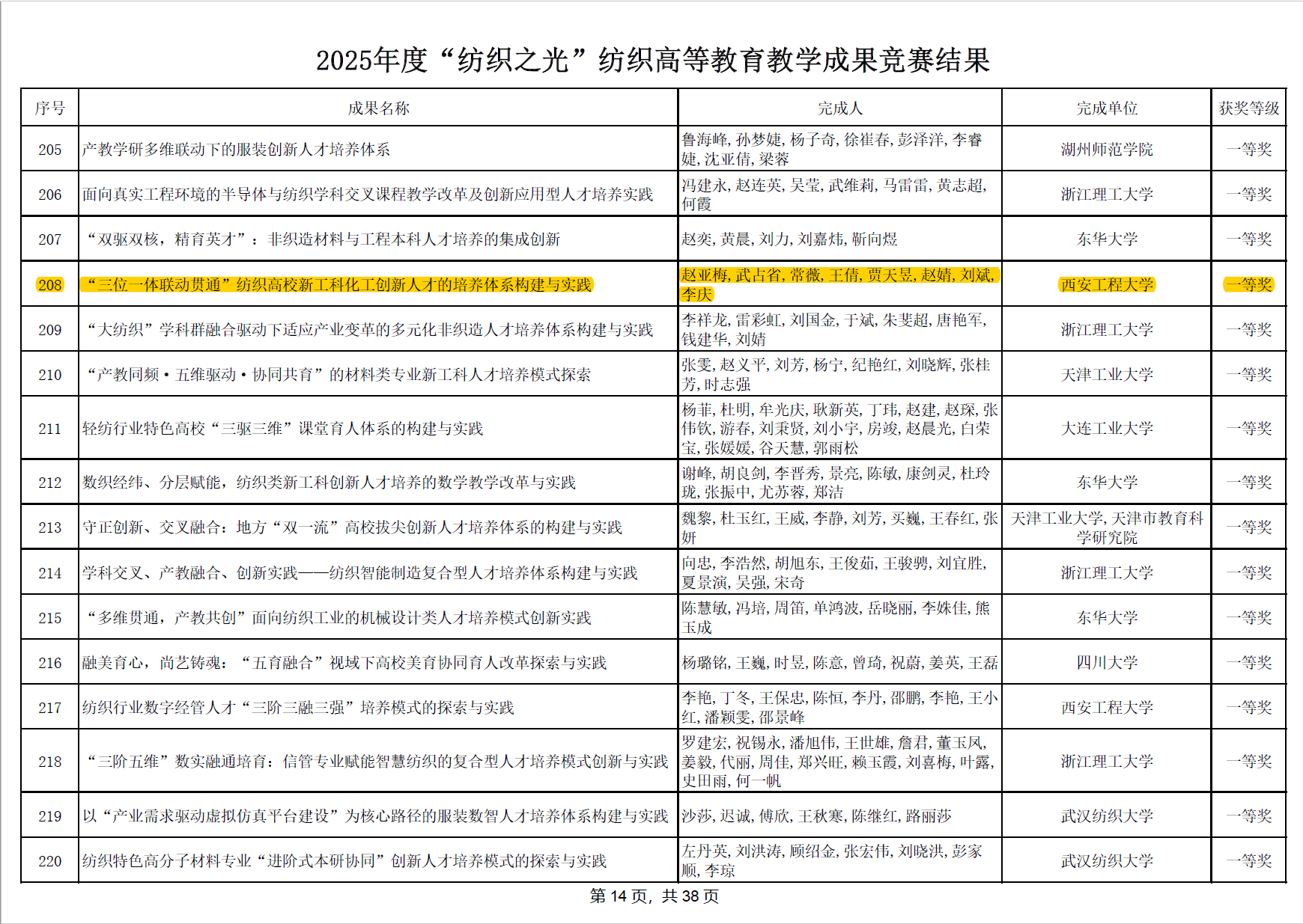 2025年9月10日,中国纺织服装教育学会公布了《关于公布2025年度“纺织之光”纺织高等教育教学成果竞赛结果的决定》,925足球网