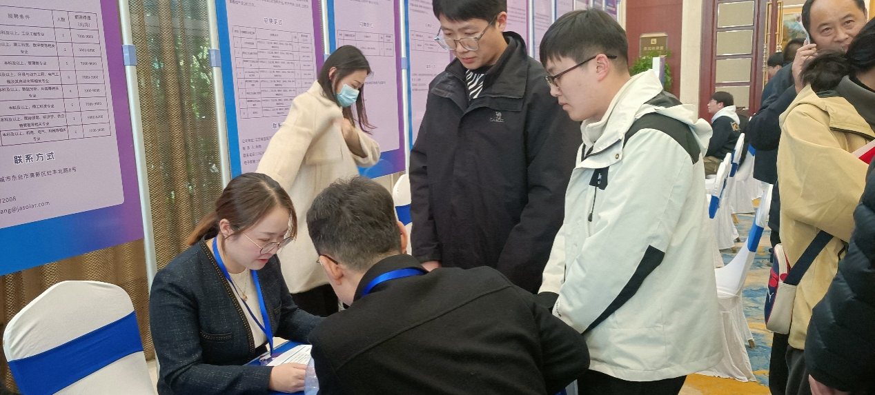 师生代表前往东台市迎宾馆黄海明珠厅参加了由50家重点企业、上百名高校代表组成的推介对接活动。江苏省劳动就业管理中心主任夏文哲,盐城市人力资源和社会保障局党委副书记、江苏省苏北农村人才市场管委会办公室主任还少丹,江苏省劳动就业管理中心副主任吴昊,东台市委常委、组织部部长马志虎,东台市委常委、常务副市长王金龙等领导参加活动。推介会上,我校师生详细了解了东台市经济社会发展情况和人才招引政策,认真听取了东台晶澳太阳能科技有限公司、天合光能(东台)科技有限公司、江苏富乐华半导体科技股份有限公司、领胜城科技(江苏)有限公司、智泰新能源(东台)有限公司5家重点企业代表的企业发展、人才引培和人才需求等情况。