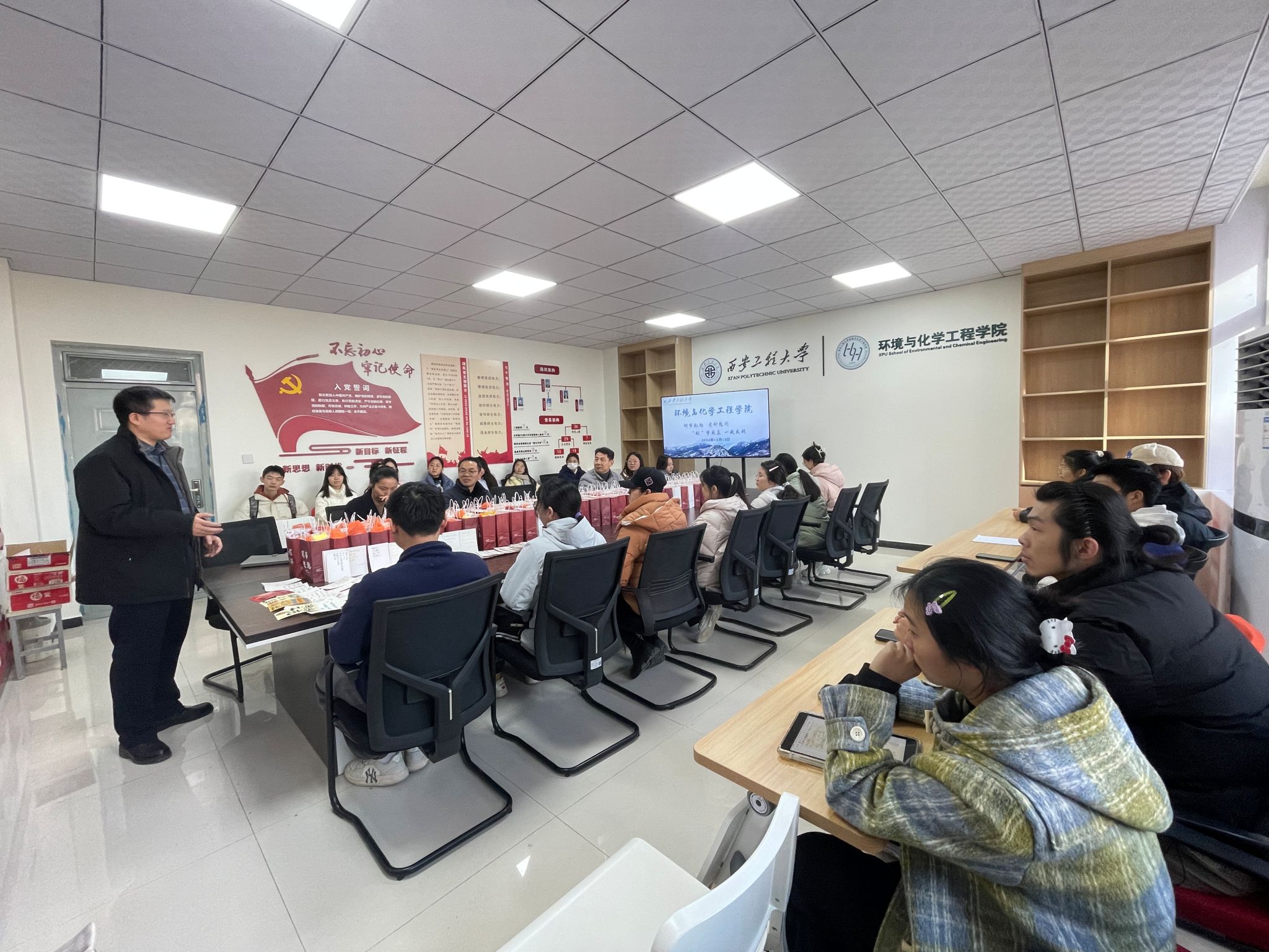 于12月13日在笃行楼236会议室开展2025届考研学子慰问活动。学院党委书记胡西民、院长武占省、党委副书记林定武、学生工作办公室主任朱瑾、毕业班辅导员刘婧及2021级考研学生代表们参与此次活动。