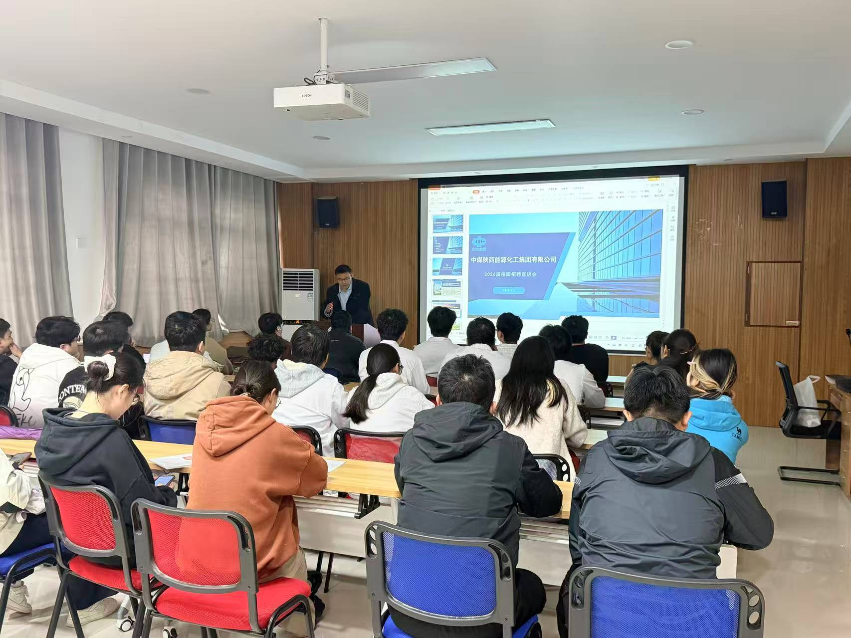 于507会议室开展中煤陕西能源化工集团有限公司招聘宣讲会,学院通过访企拓岗和其他形式拓展新用人单位入校开展校园招聘。