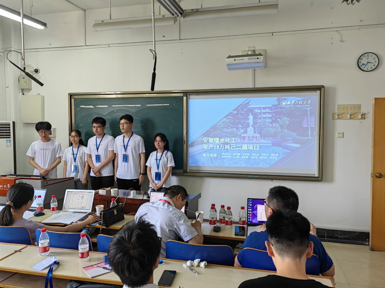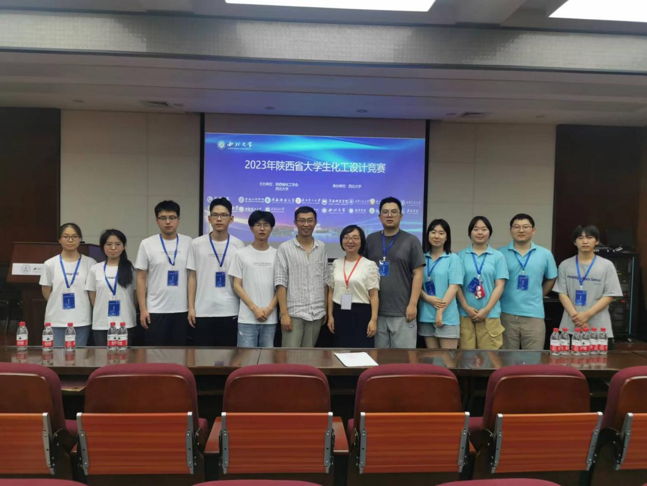 2023年6月26日,陕西省大学生化工设计竞赛决赛在西北大学顺利举行,从3月份收到设计任务书开始,同学们利用课余和周末休息时间,克服困难坚持不懈,为某大型化工企业设计一座用于己二腈清洁生产的分厂。在赵亚梅、王倩、刘宏臣、车远军、常薇、霍锦华以及李亚楠老师每周一次组会的指导下,由谭乃正、袁童乐、朱承旭、余洪平、顾小祺同学组成的“亮腈腈”参赛队和由郑钧耀、张梦楠、程欣欣、徐苏扬、郝昕颖同学组成的“烯天取腈”参赛队,分别荣获陕西省“一等奖”。由吴佩雨、聂代浩、彭健、白晨、曾澍亭同学组成的“精益求腈”参赛队荣获陕西省“二等奖”。