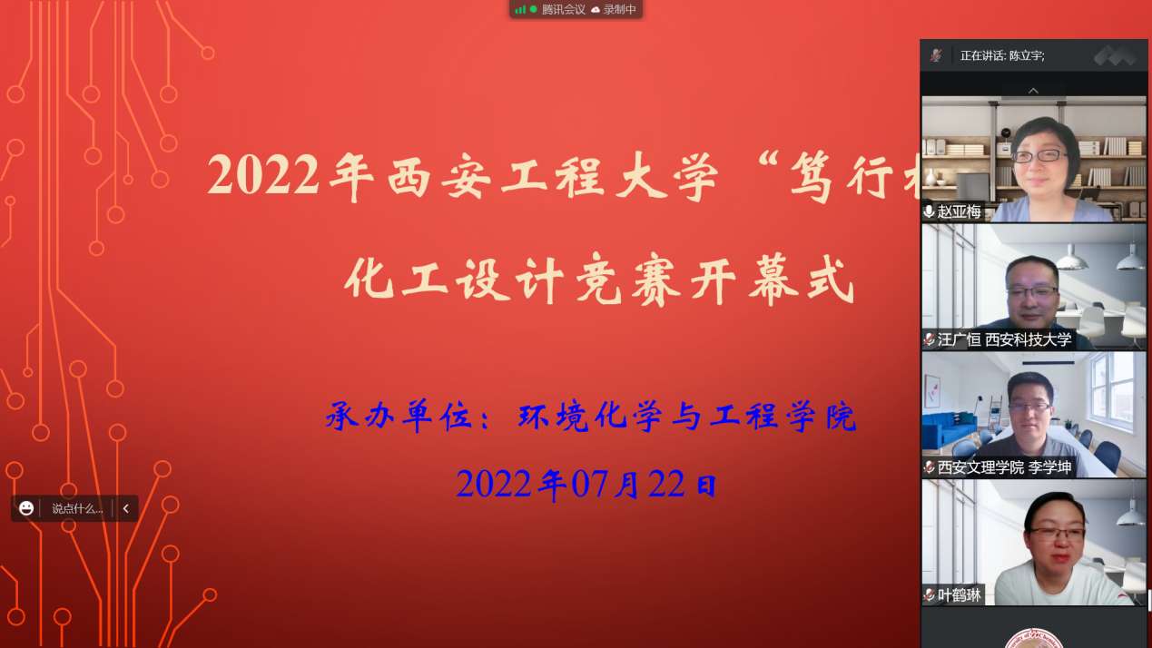 承办的西安工程大学第四届“笃行杯”化工设计竞赛通过腾讯会议形式在我校成功举行,本届比赛采用线下评审和线上答辩相结合的方式进行,此次竞赛得到我校教务处和学工处等部门的大力支持。