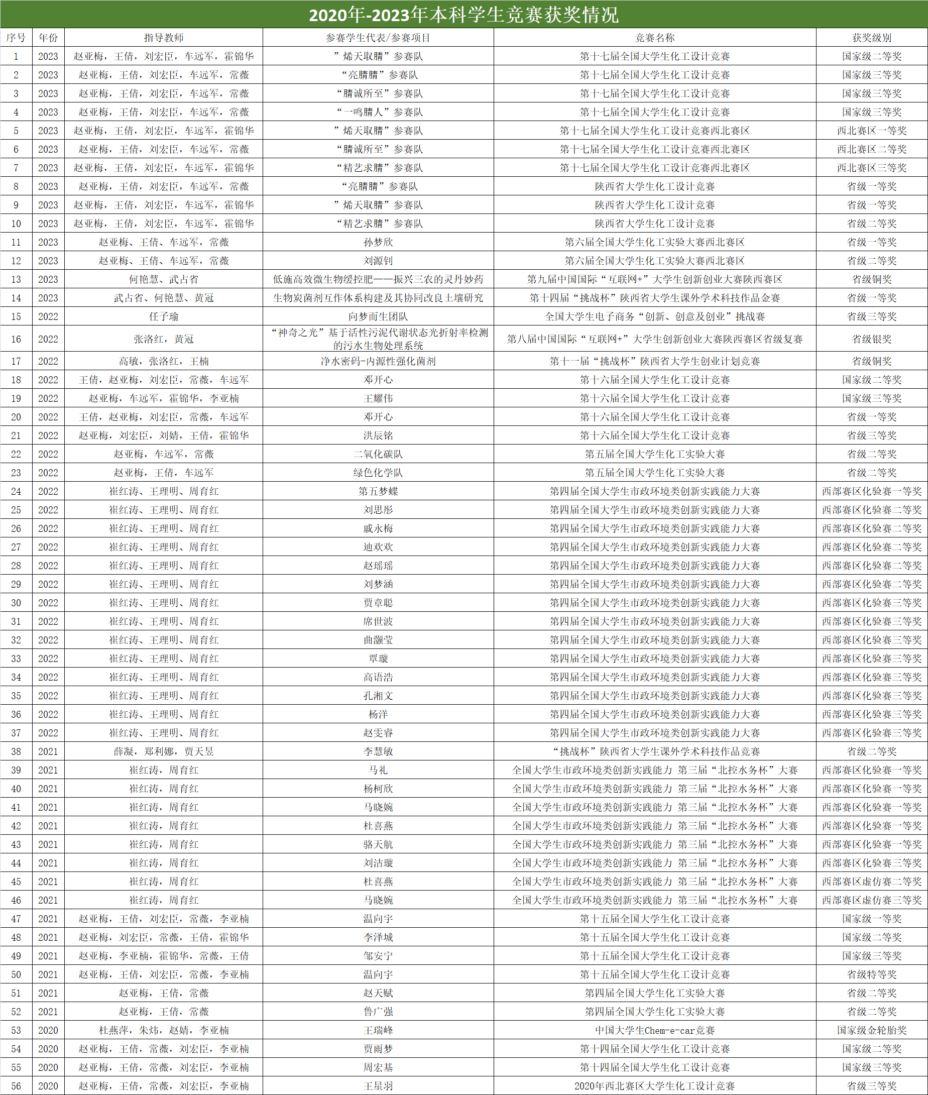 2020年-2023年本科学生竞赛获奖情况