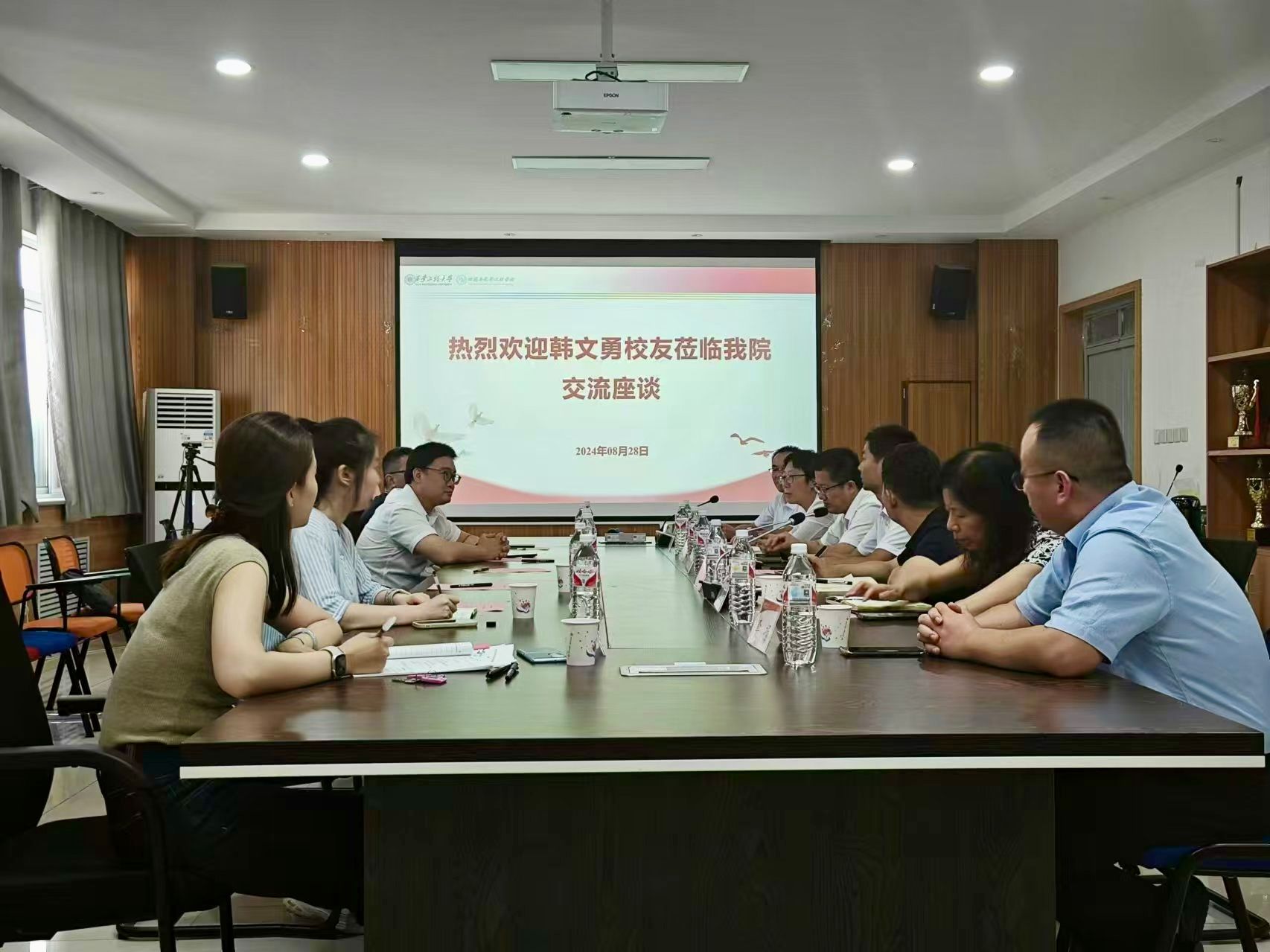 8月28日,全国五一劳动奖章获得者、我校应用化学专业2003级校友、遵义医科大学教授韩文勇应邀回到母校,并同925直播足球 师生进行了座谈交流。座谈前,校长王海燕、副校长朱永民一行在临潼校区贵宾室会见了韩文勇校友。