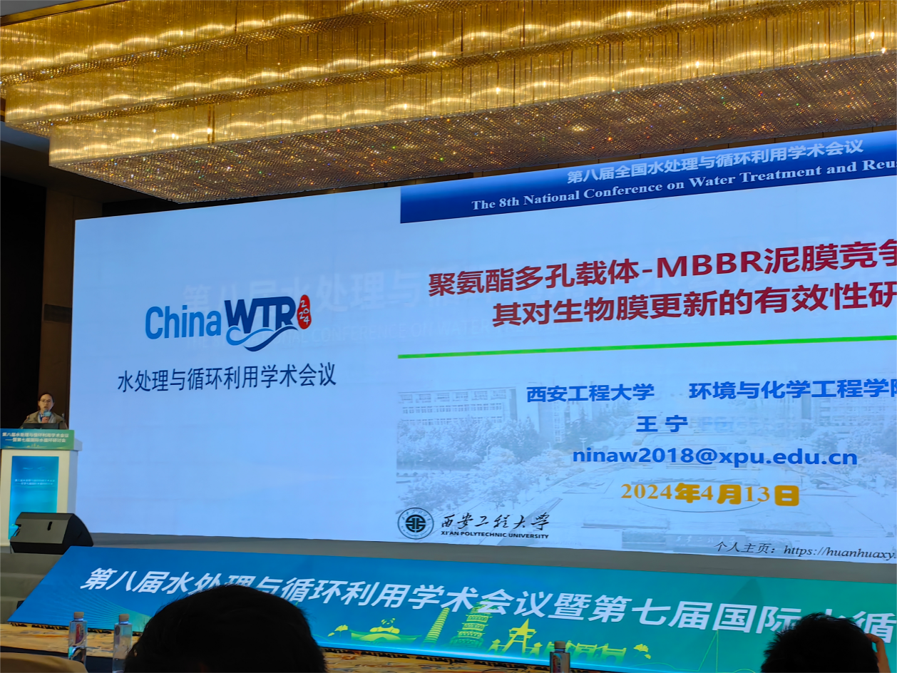 王宁副教授受邀参会,并在分会场三(好氧生物转化理论与技术)作了题为“MBBR系统功能载体改性及生物膜活性保持研究”的学术报告,展示了其在水处理与循环利用领域的研究成果。会后,王宁老师积极与来自全国各高校、科研院所及行业代表性企业的专家学者开展学术交流,了解水处理与循环利用领域的最新研究进展和行业发展动态,为今后加强合作交流奠定了基础。