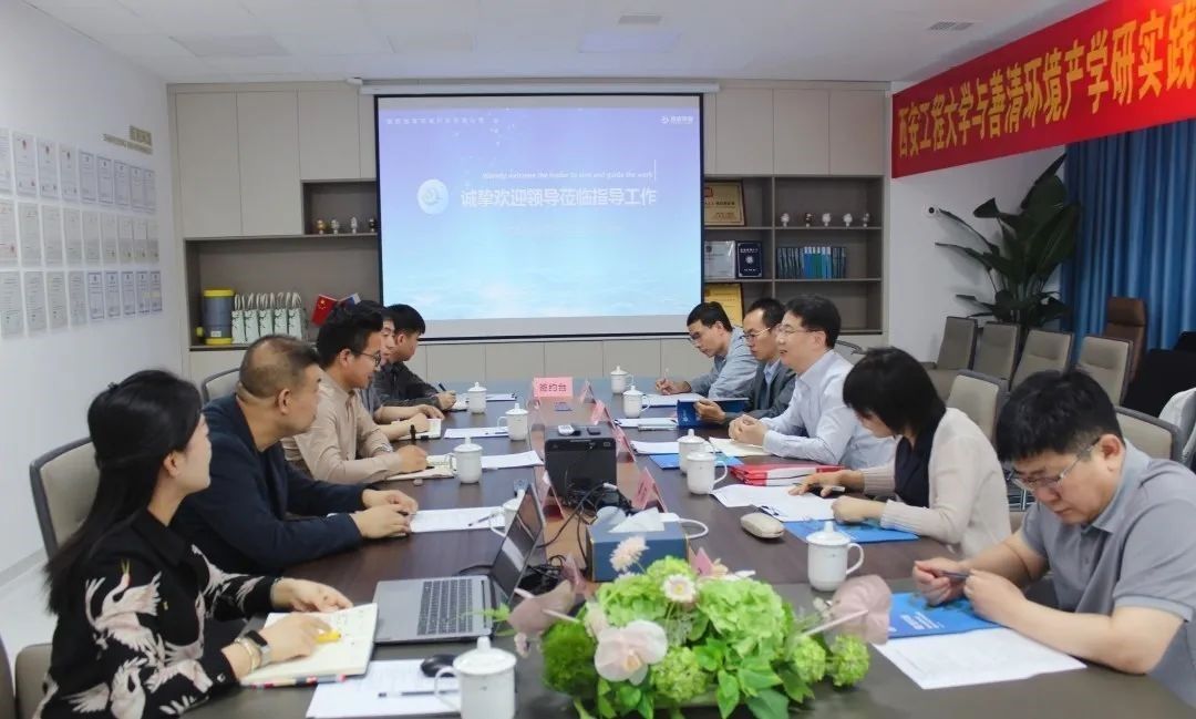 2025年4月27日上午,925足球网 党委书记胡西民、党委副书记林定武、环境工程系主任李茹、副主任王理明,教师代表原龙等一行前往善清环境科技有限公司进行产学研合作签约暨“产学研实践基地”授牌仪式。善清环境总经理毛新博,技术副总经理陈百恒,销售部副经理权柯柯,综合管理部经理介晨等出席。